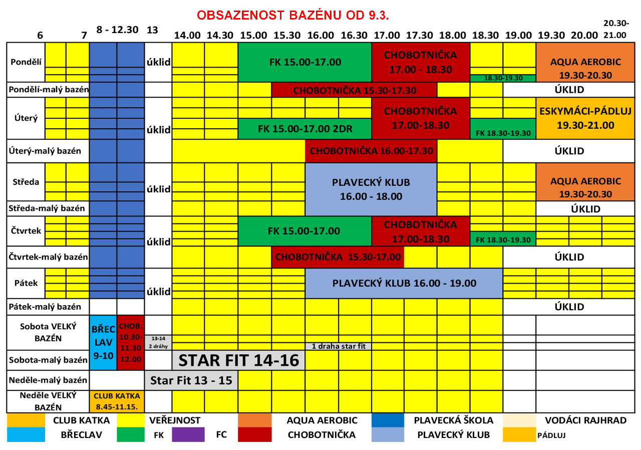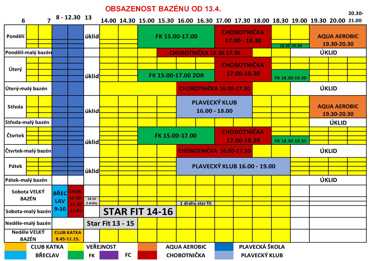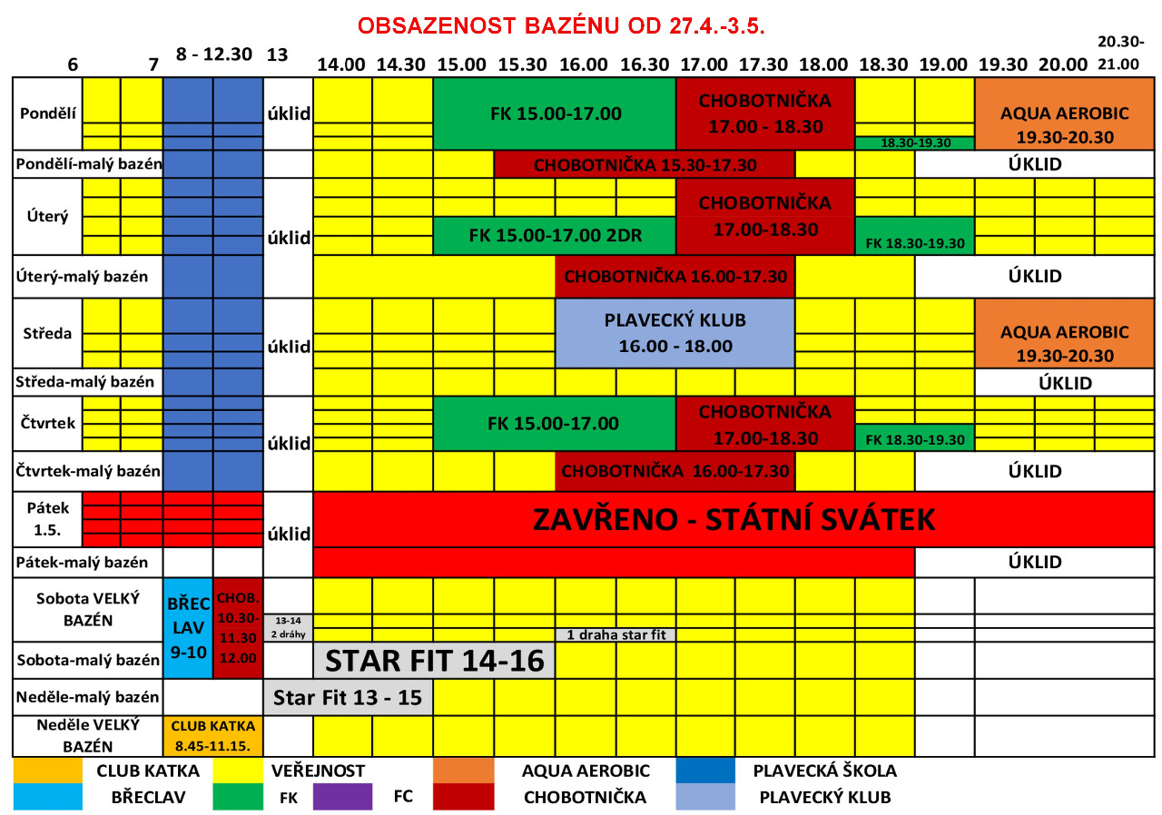 Upozorňujeme návštevníky, že hodina plavání tzn. 60 minut začíná vstupem do prostoru šatny a