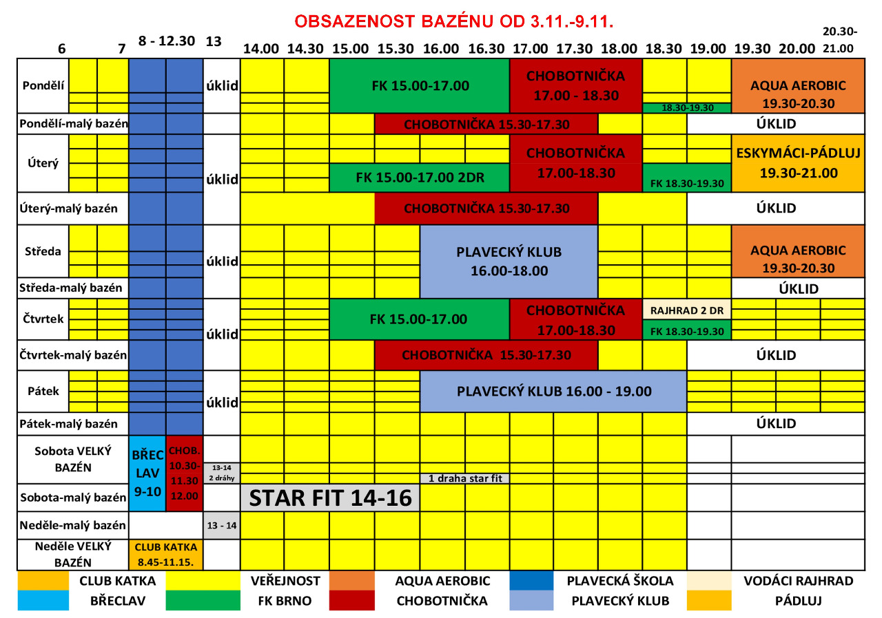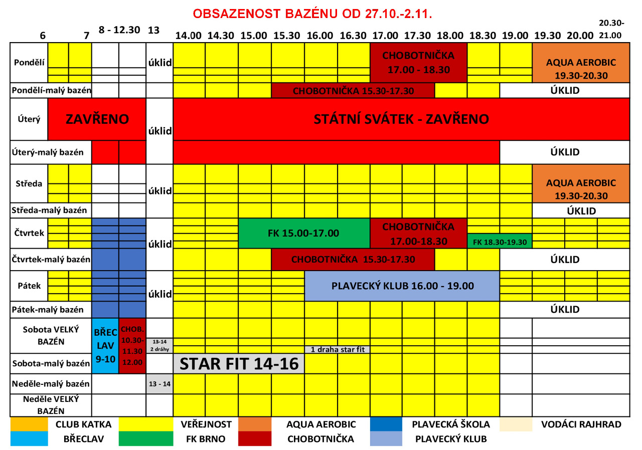 Upozorňujeme návštevníky, že hodina plavání tzn. 60 minut začíná vstupem do prostoru šatny a